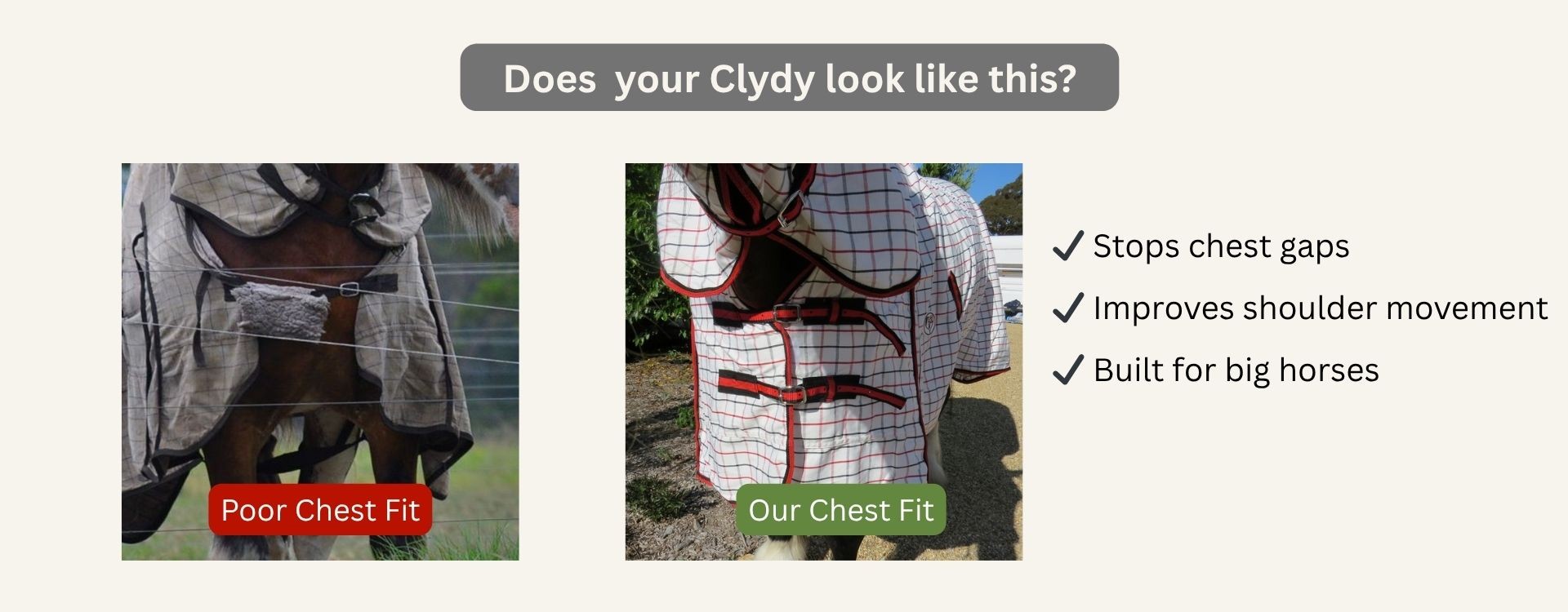 Most horse rugs are designed for average builds, not big, broad-chested horses like Clydesdales, draft horses, and other big horse breeds