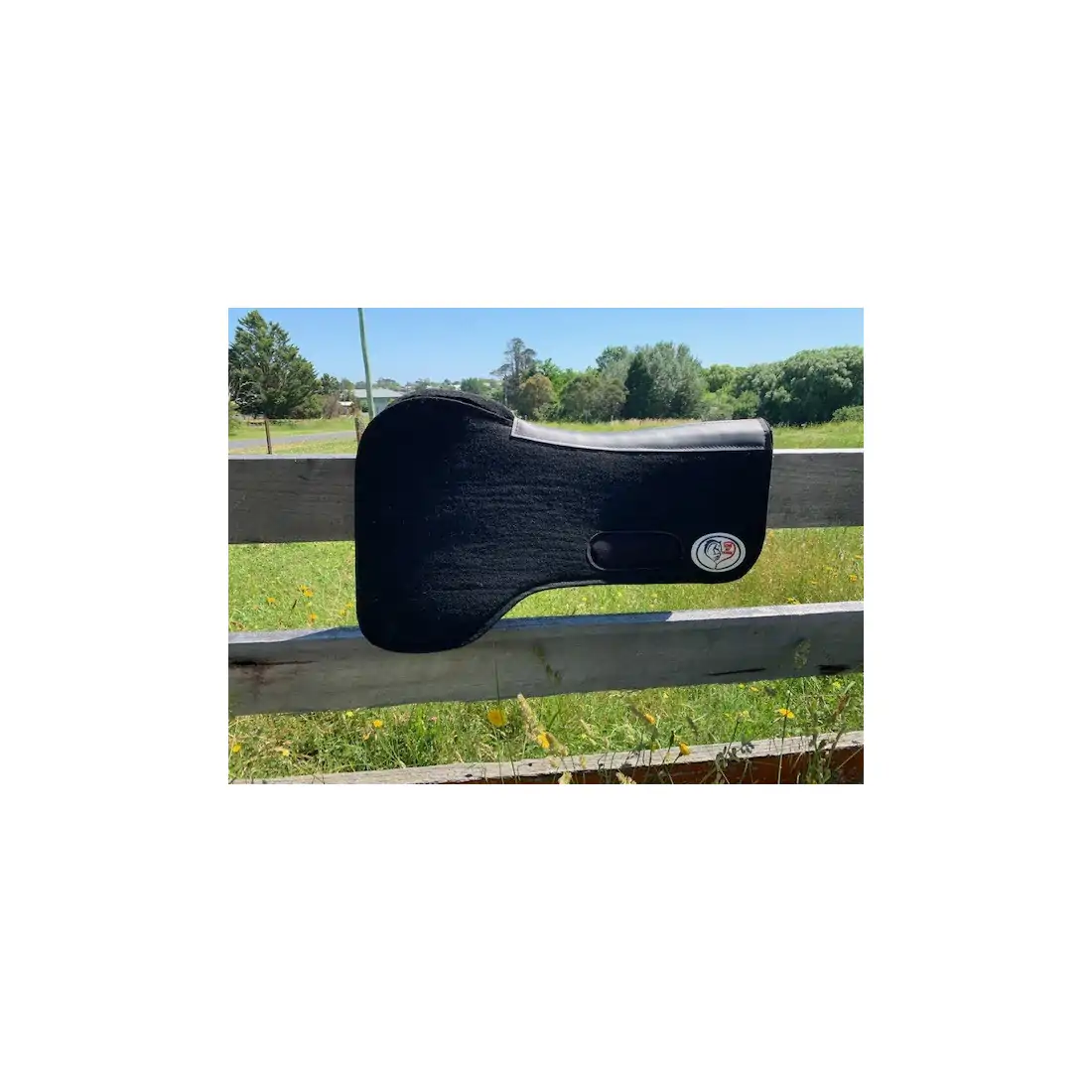 Lightweight, breathable and shock-absorbing 100% wool pad with open wither relief and leg cutaway. Fits Dressage, GP, Jumping, or small stock saddles.