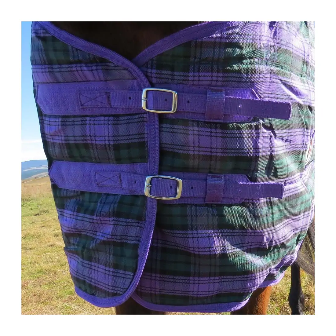 Purple / Green check stable combo horse rug showing chest fit with double buckles