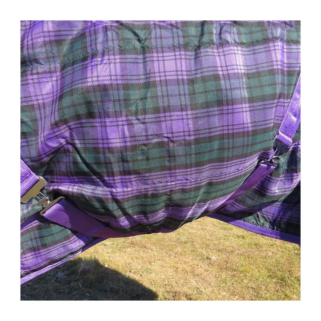 Purple / Green check stable combo horse rug with steel clips on leg straps