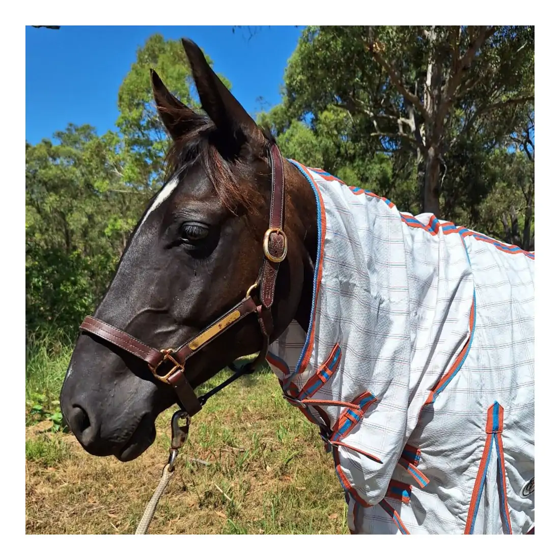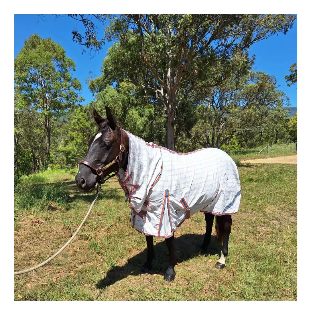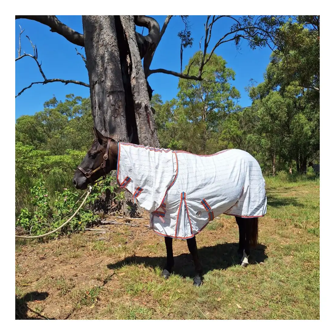 This Poly Cotton Combo Horse Rug is durable and stylish. Featuring breathable ripstop fabric, satin lining, and protection from UV rays and insects. It offers a generous fit with a large chest overlap, adjustable buckles, and a protective tail flap. Ideal for show days, traveling, and paddock use.