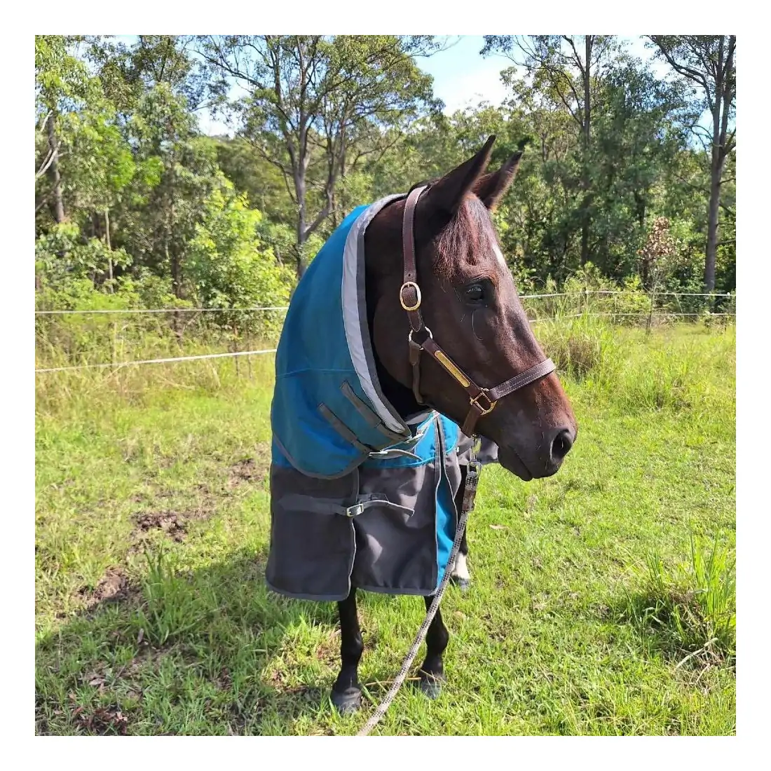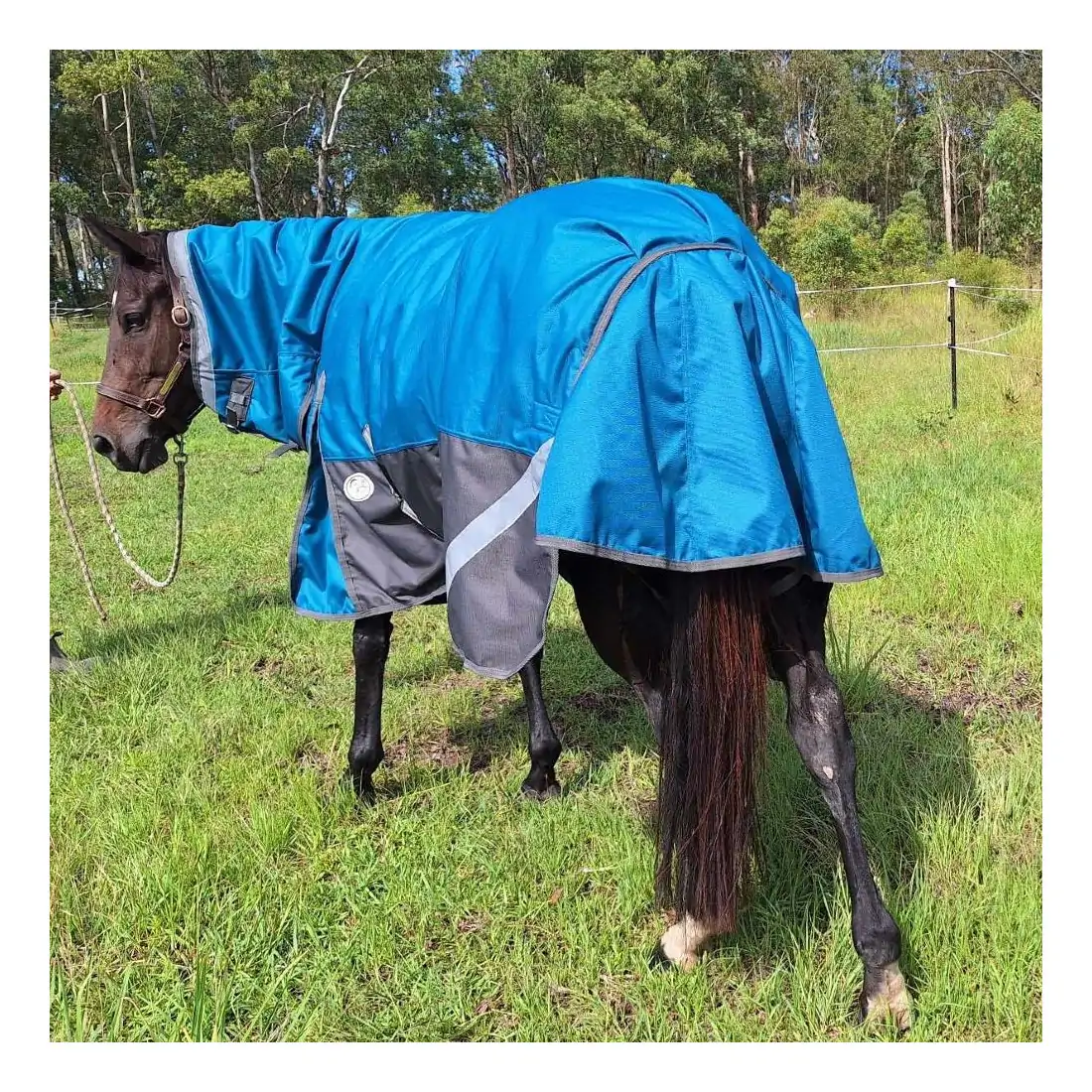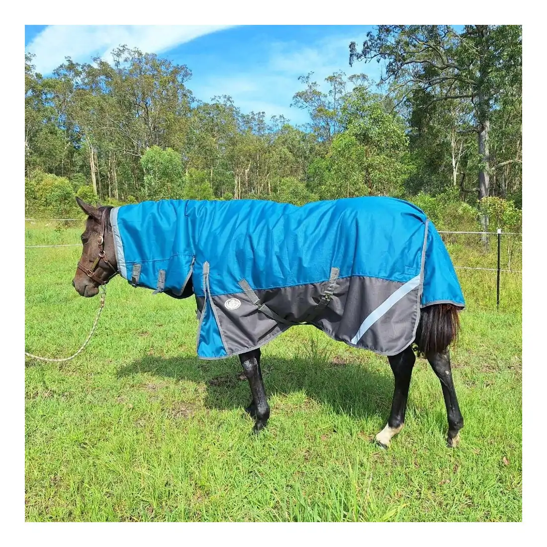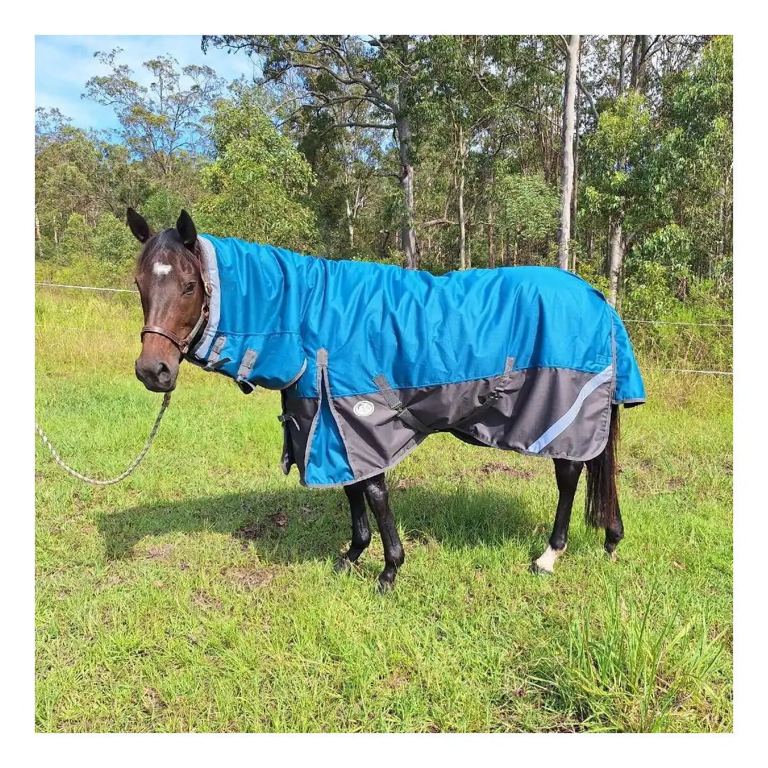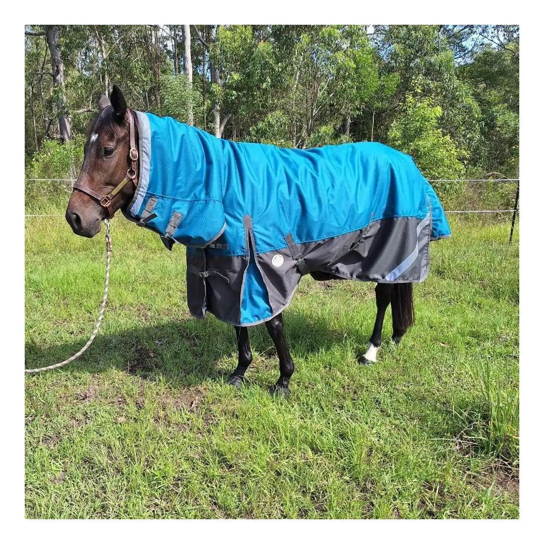 Keep your horse dry and comfortable with the Love My Horse 1200 Denier Rainsheet Combo Horse Rug, featuring 100% waterproof, breathable fabric and a leak-free neck design. With reflective strips, double neck buckles (no quick clips), and a large tail flap, it’s perfect for horses that get too hot in heavy rugs. Sizes 5'6 to 6'3.